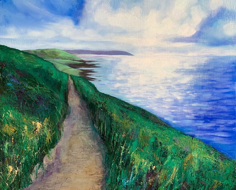 Impressions of a breezy walk along the South West coastal path that clears out the cobwebs. I love the way the early summer sun imbues the greenery with a luscious glow and casts dancing glittering light across the ocean’s surface.